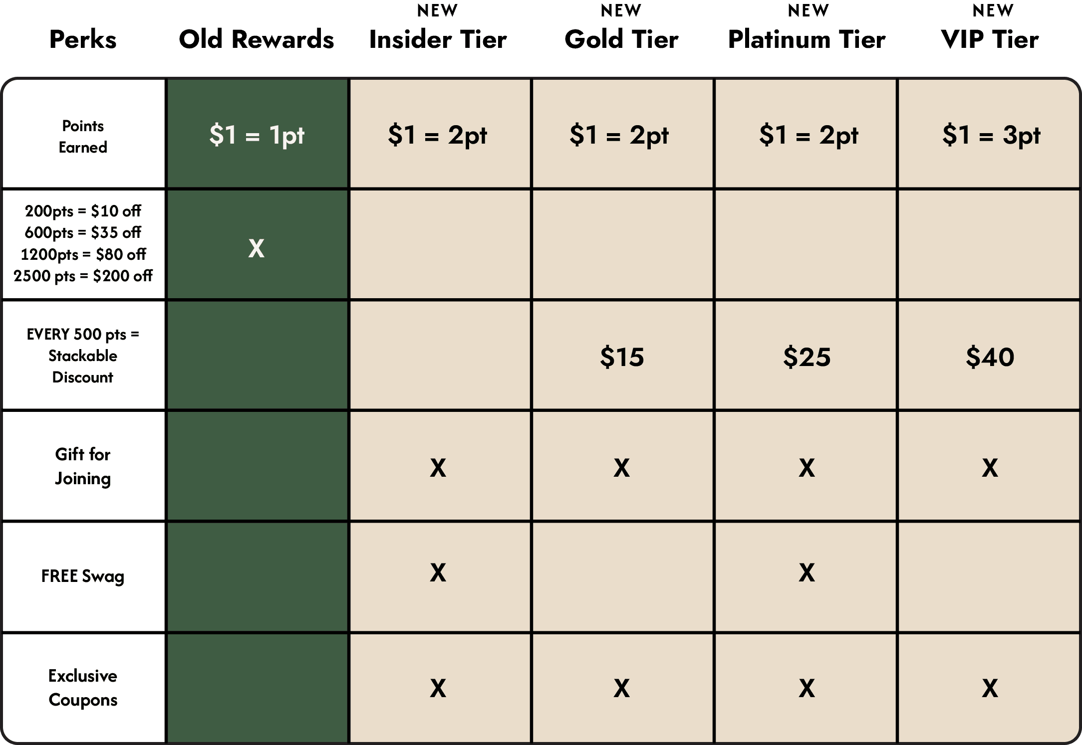 - Rewards, with tiers. Instead of earning the same discounts with the points you earn, Rewards will be tiered, meaning you have the opportunity to level up your deals!